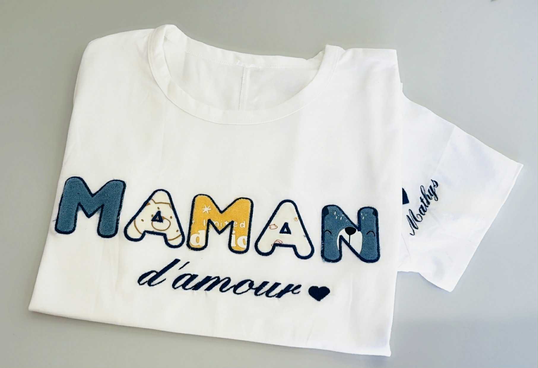 – Cadeau de naissance ou de fête des mères ou toutes autres occasions Un t-shirt doux et unique pour célébrer le plus beau rôle du monde : celui de Maman Chaque pièce est personnalisée à la main avec des lettres en tissu soigneusement choisies, et une broderie délicate pour marquer cette belle aventure.